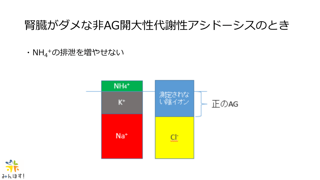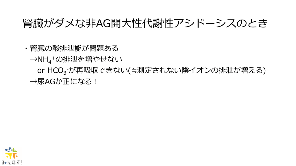 #109. 腎臓がダメな非AG開大性代謝性アシドーシスのとき ・NH4+の排泄を増やせない