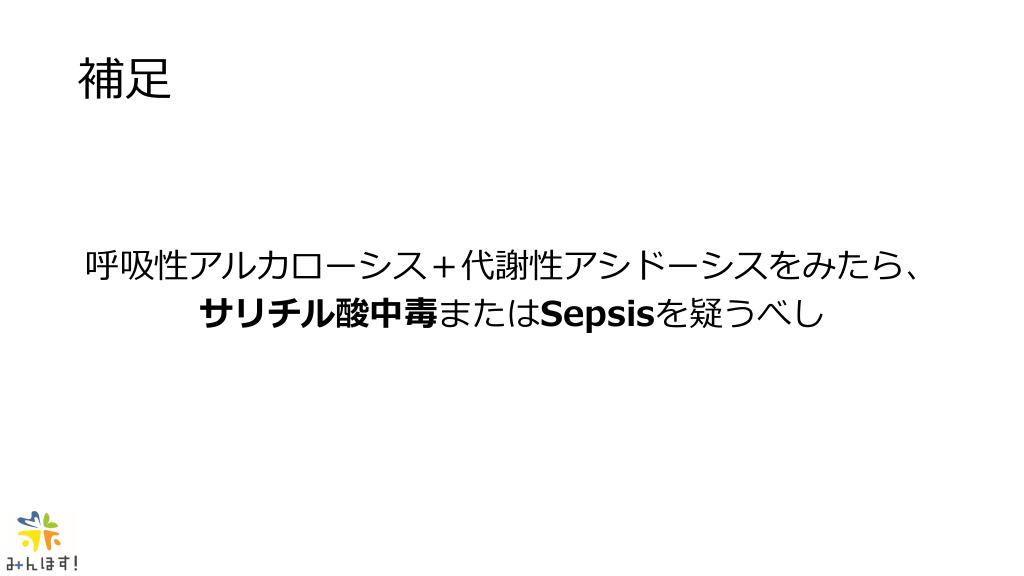 #118. 補足 呼吸性アルカローシス+代謝性アシドーシスをみたら、 サリチル酸中毒またはSepsisを疑うべし