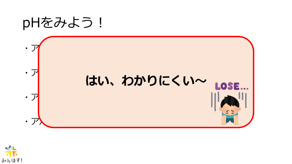 #29. pHをみよう! ・アシデミア:pH≦7.35 ・アルカレミア:pH≧7.45 はい、わかりにくい~ ・アシドーシス:体内にpHをさげる病態があること ・アルカローシス:体内にpHをあげる病態があること