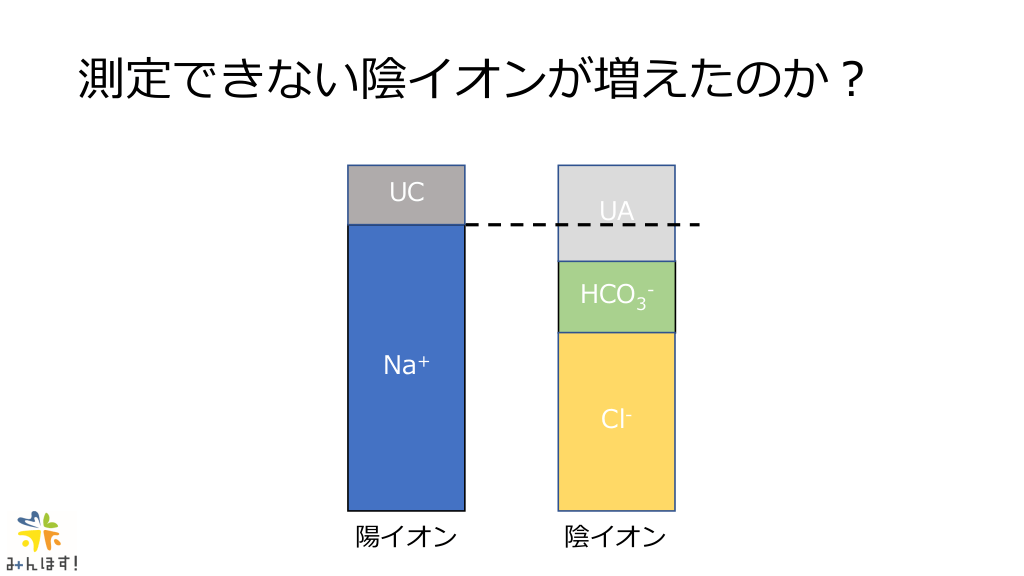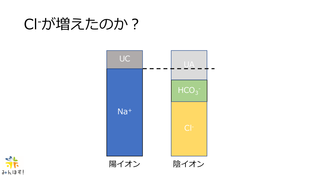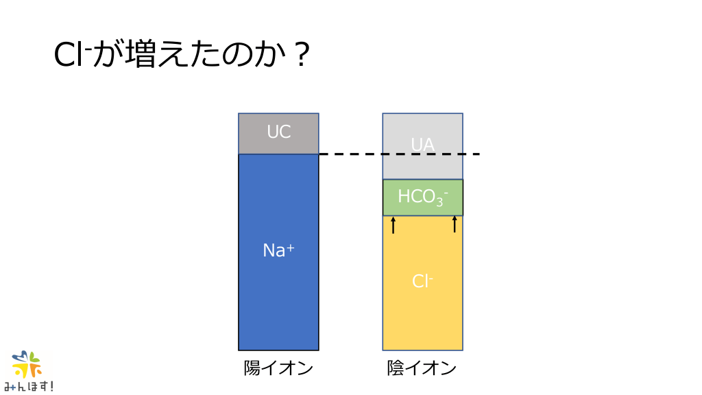 #51. Cl-が増えたのか? UC UA HCO3- Na+ Cl- 陽イオン 陰イオン