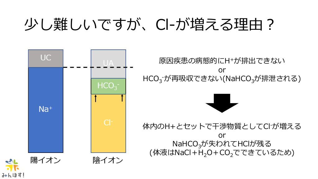 #50. Cl-が増えたのか? UC UA HCO3- Na+ Cl- 陽イオン 陰イオン