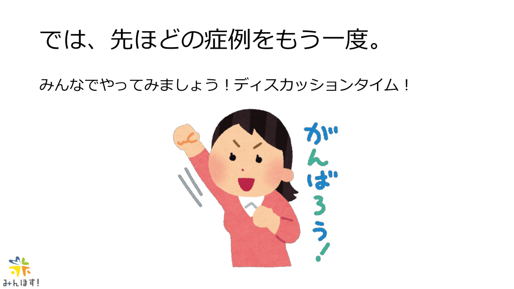 #76. では、先ほどの症例をもう一度。 みんなでやってみましょう!ディスカッションタイム!