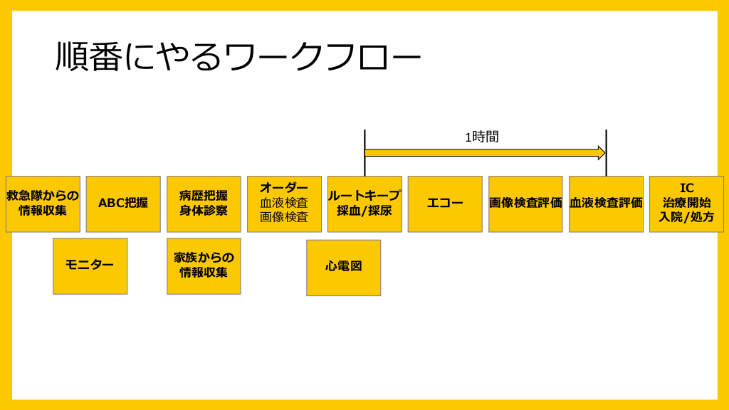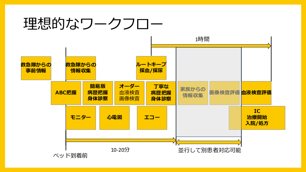 救急外来におけるワークフローを大まかに整理してみました。
