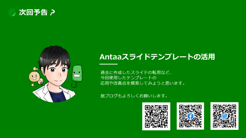#30. 過去に作成したスライドの転用など、今回使用したテンプレートの応用や改善点を模索してみようと思います。 Antaaスライドテンプレートの活用 ? 拙ブログもよろしくお願いします。