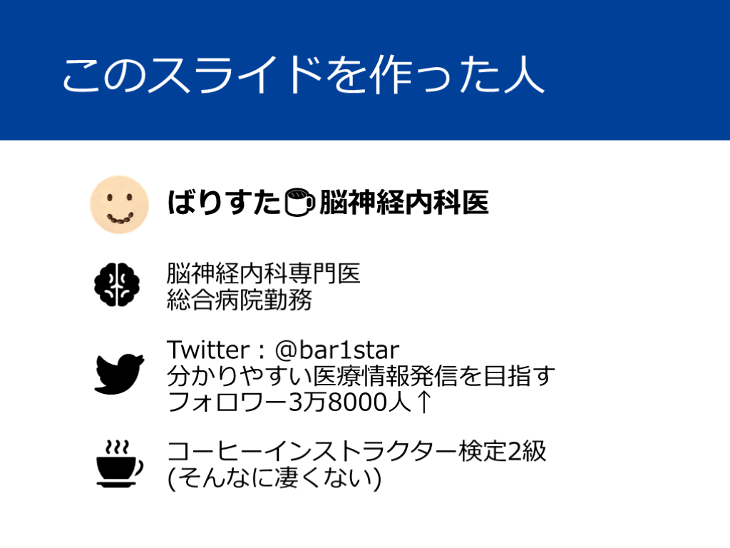 #2. このスライドを作った人 ばりすた☕脳神経内科医
