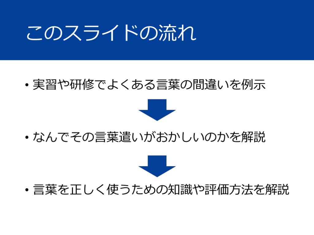 #5. このスライドの流れ 実習や研修でよくある言葉の間違いを例示