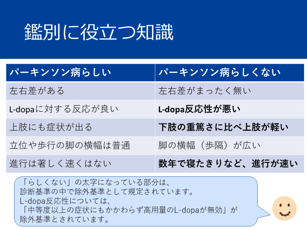 #18. 鑑別に役立つ知識 「らしくない」の太字になっている部分は、診断基準の中で除外基準として規定されています。