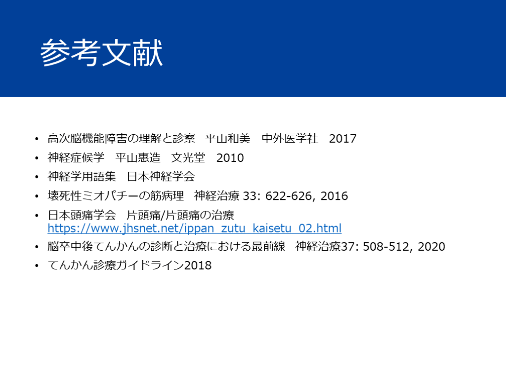 #25. 参考文献 高次脳機能障害の理解と診察 平山和美 中外医学社 2017