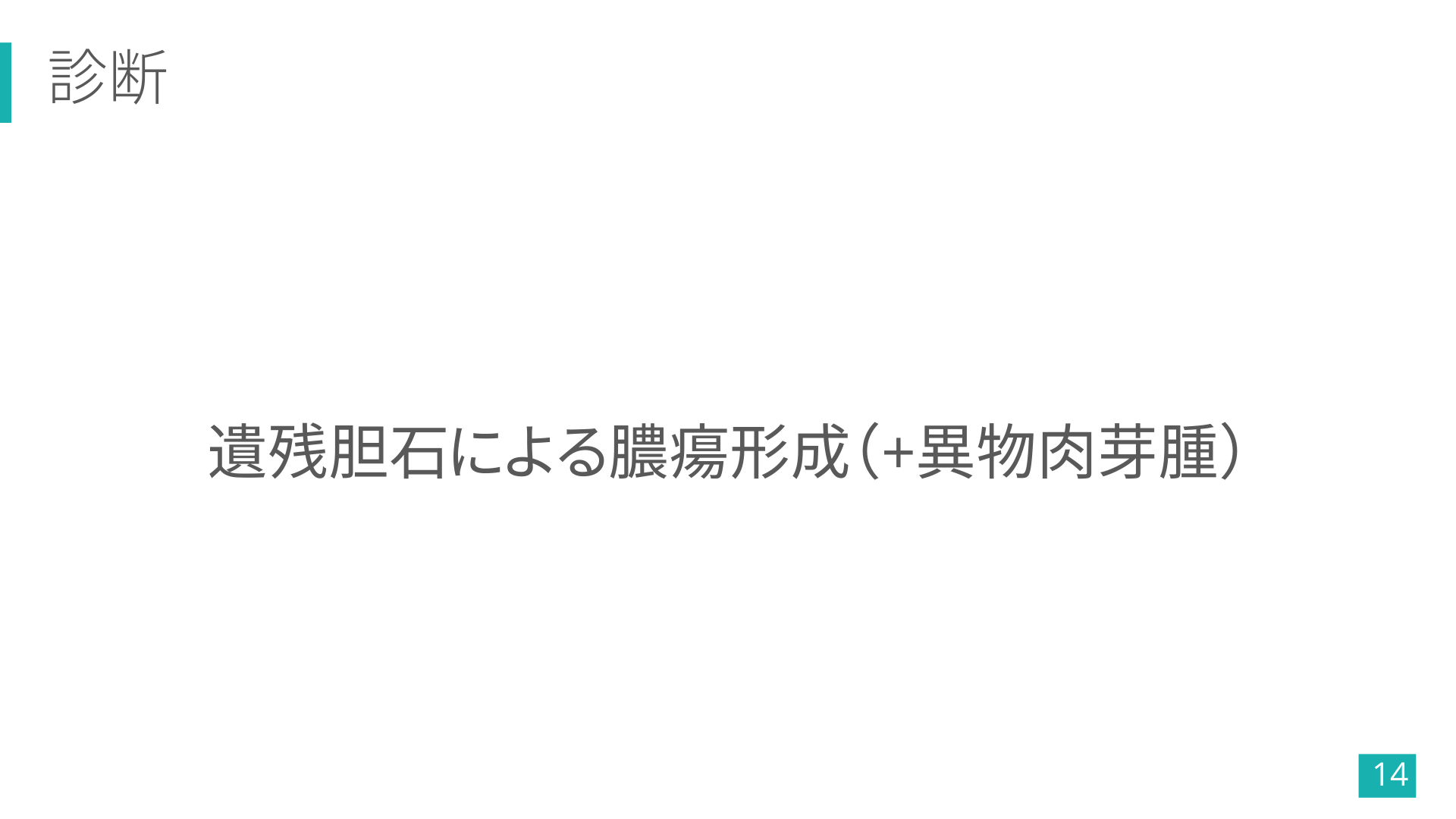 #14. 診断 遺残胆石による膿瘍形成(+異物肉芽腫) 14