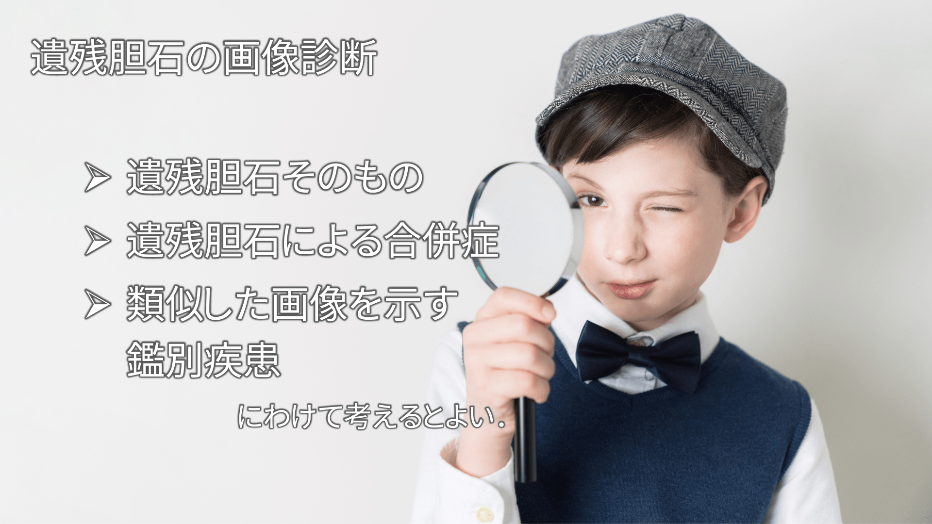 #23. 遺残胆石の画像診断 Ø 遺残胆石そのもの Ø 遺残胆石による合併症 Ø 類似した画像を示す 鑑別疾患 にわけて考えるとよい.