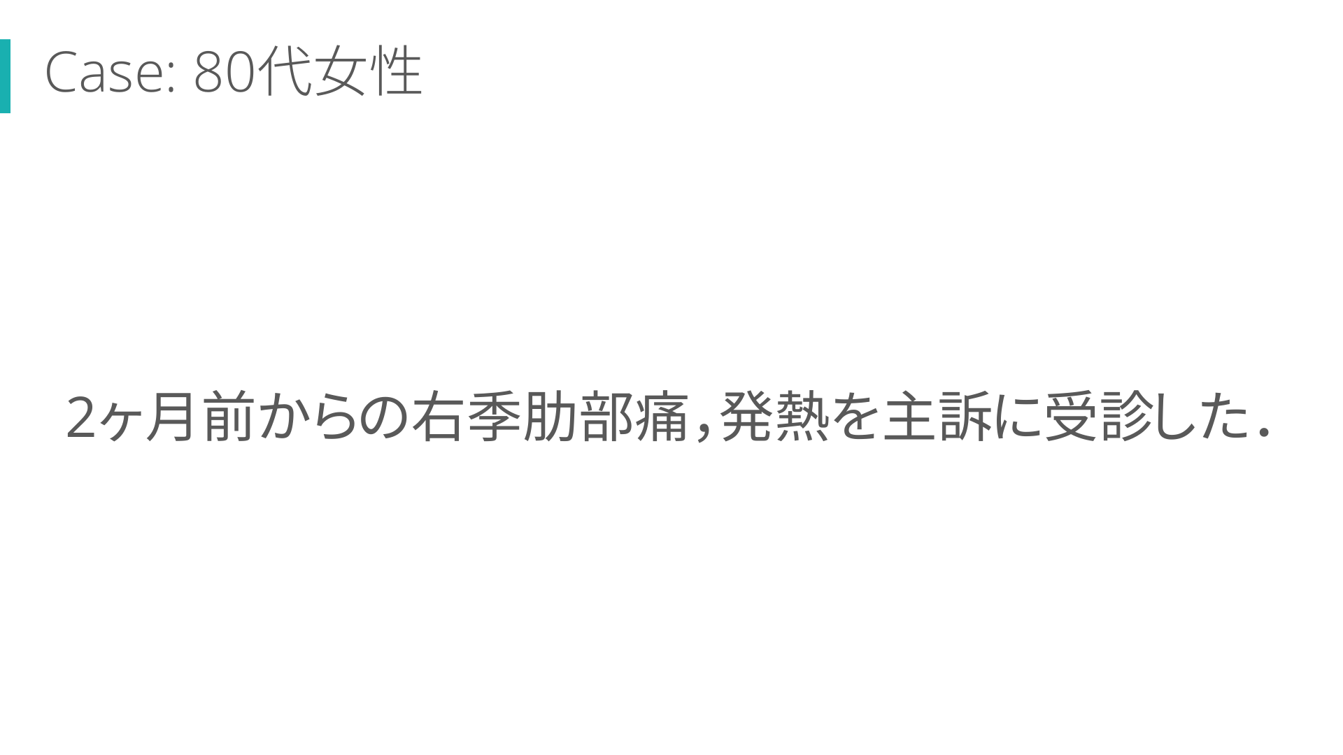 #3. Case: 80代女性 2ヶ月前からの右季肋部痛,発熱を主訴に受診した.