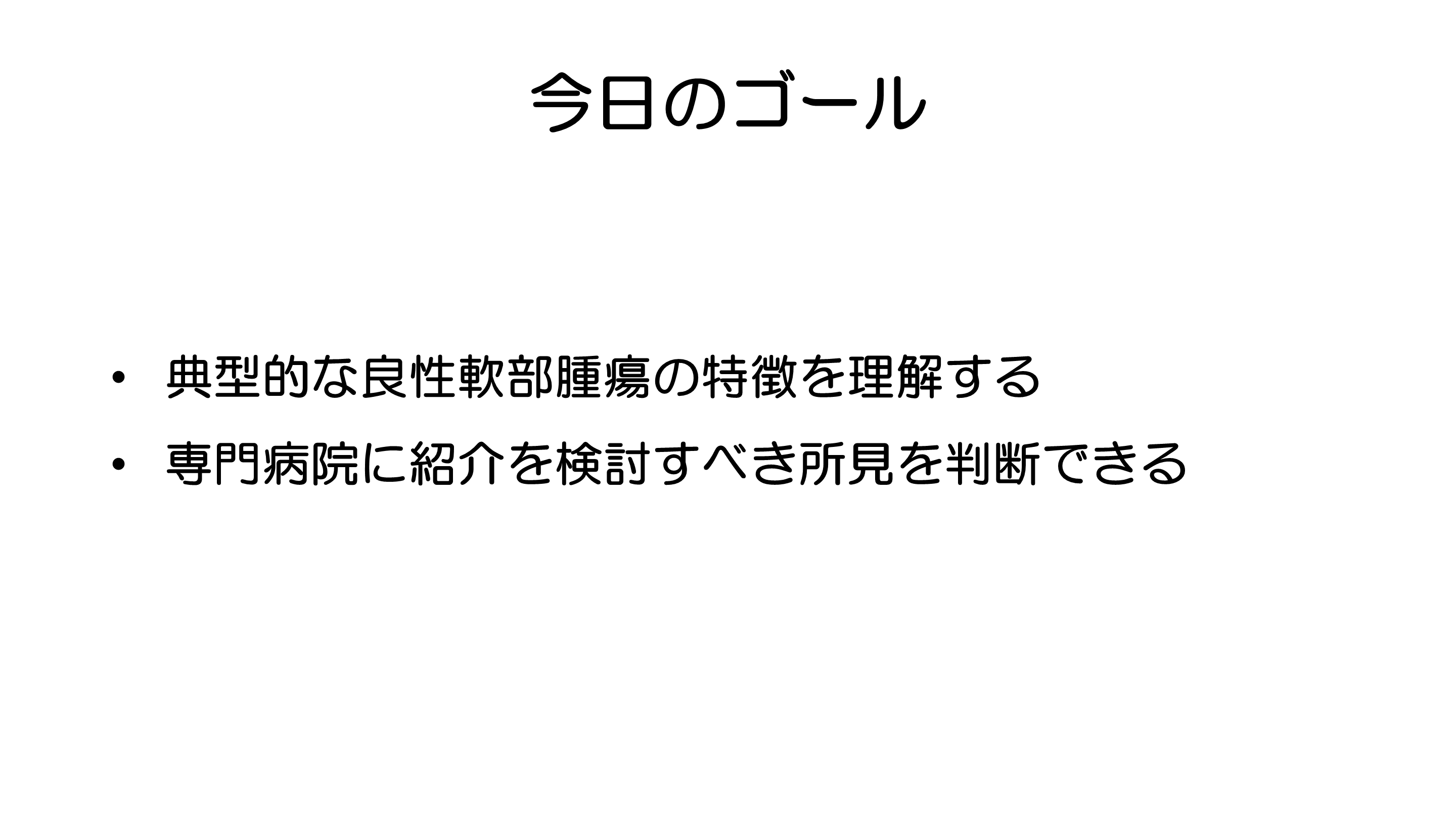 医師向けに、四肢・体幹部の軟部腫瘍の鑑別と紹介タイミングについて解説します。良性腫瘍の典型例を理解し、悪性の可能性を念頭に置いた診断が重要です。本資料では、脂肪腫、神経鞘腫、血管腫などの特徴や、5cm以上の腫瘍、急激な増大、疼痛の性状についても詳しく説明します。実際の臨床において、専門医への紹介をためらわず行うためのポイントをお伝えします。専門病院に連携し、適切な診療を実現しましょう。