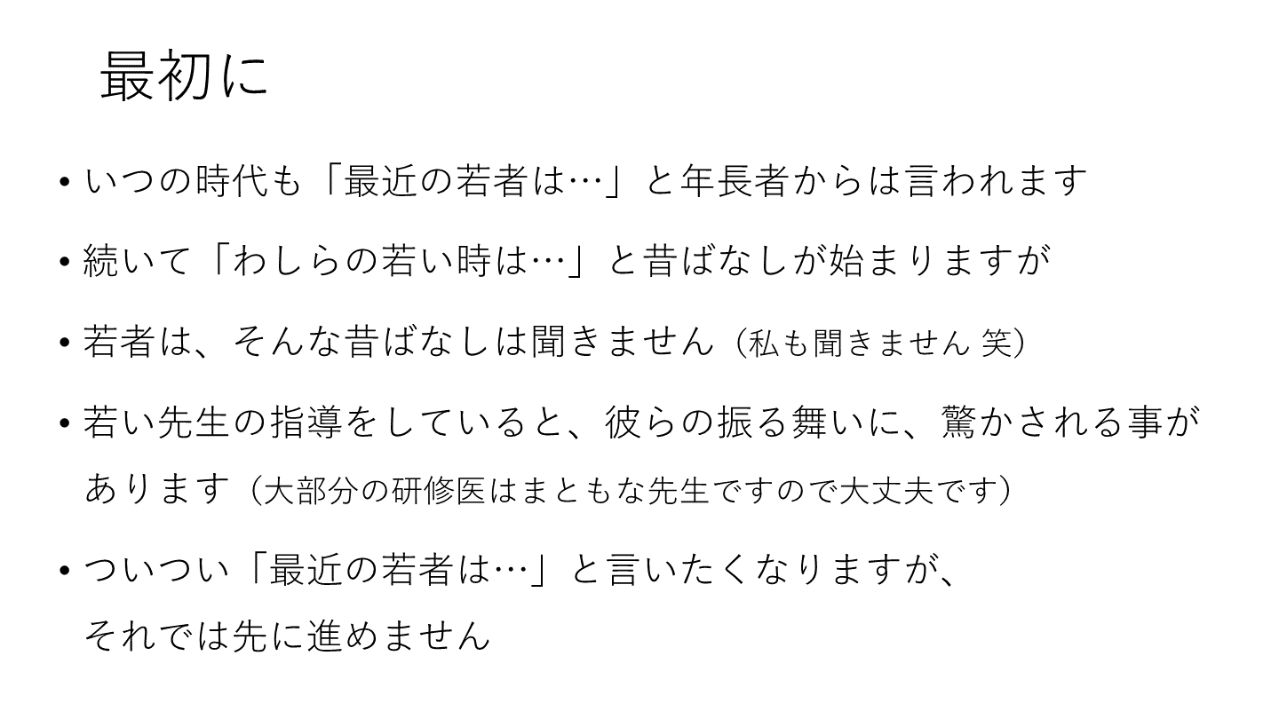若い先生の指導をしていると、彼らの振る舞いに、驚かされる事があります(大部分の研修医はまともな先生ですので大丈夫です)