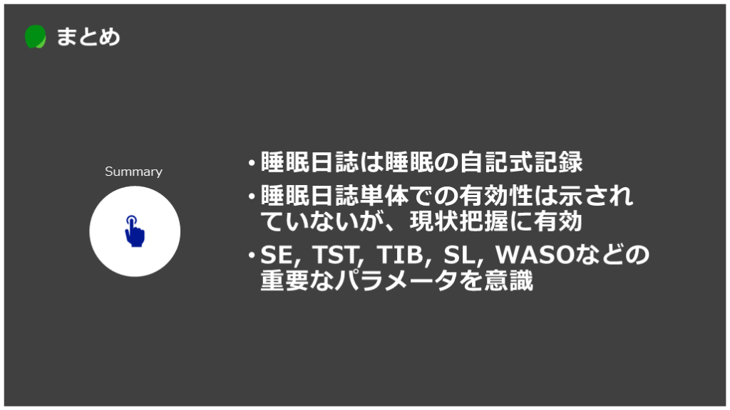 睡眠日誌単体での有効性は示されていないが、現状把握に有効