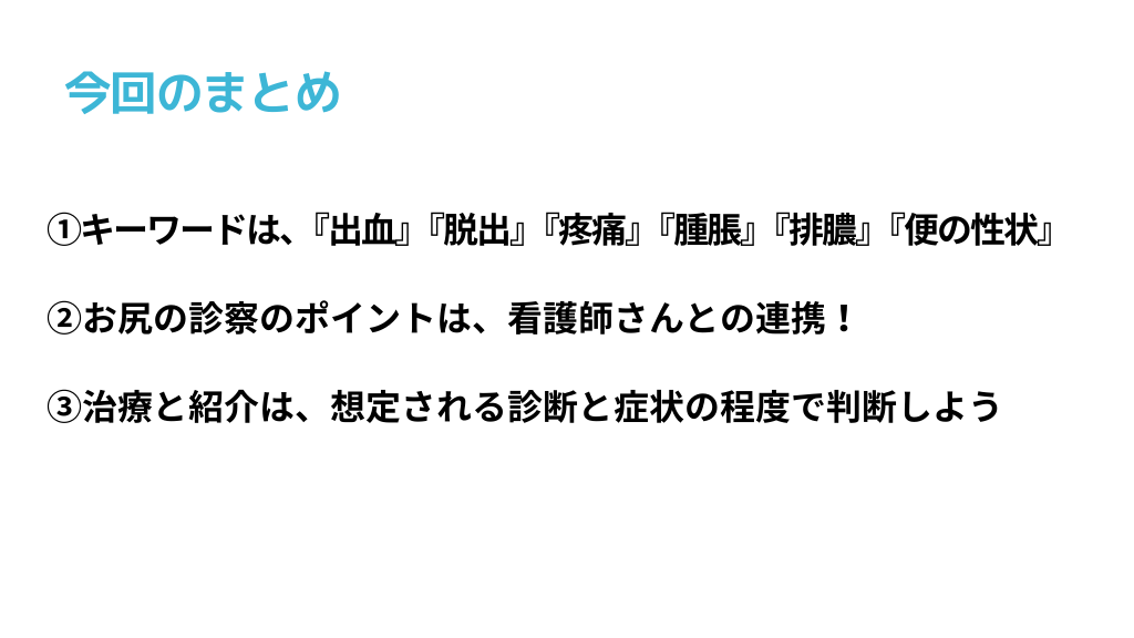 患者さんが「お尻が…」と訴えた場合、どのように対応すればよいのでしょうか。本スライドでは、肛門科以外の医師が知っておくべき肛門症状の問診や診察のポイントを解説します。出血、疼痛、腫脹、便の性状といったキーワードを基に、適切な初期対応と専門医への紹介の基準を理解し、今後の診療に役立てていただければと思います。