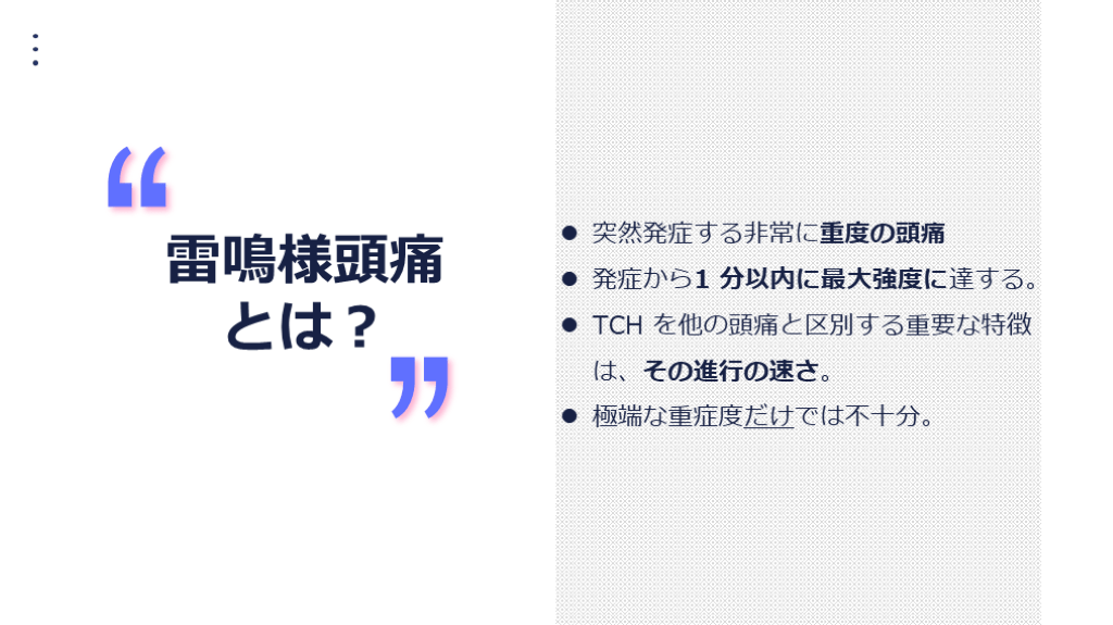 TCH を他の頭痛と区別する重要な特徴は、その進行の速さ。