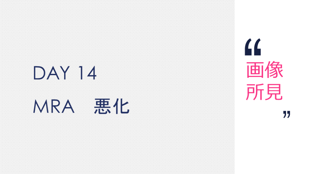 DAY 14に一過性の右片麻痺があり、ER受診。MRI再検した。
