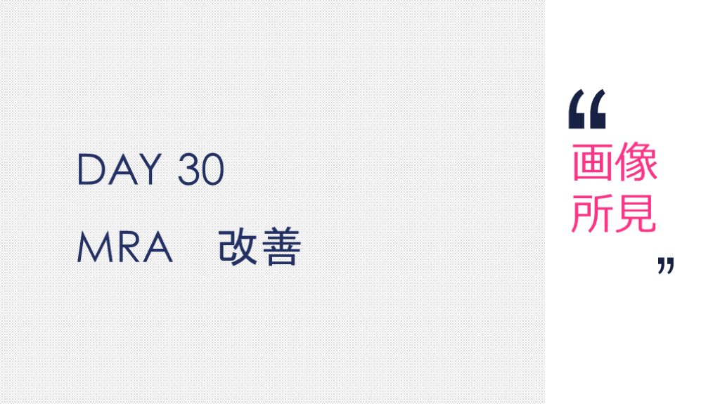 MRAでのSpasm所見はあとから顕在化する。発症時はわからないことがある。一週間以内には出現する、と理解しておく。よって、フォロー画像は3-5日後に実施する。spasm所見は3か月以内には回復する。