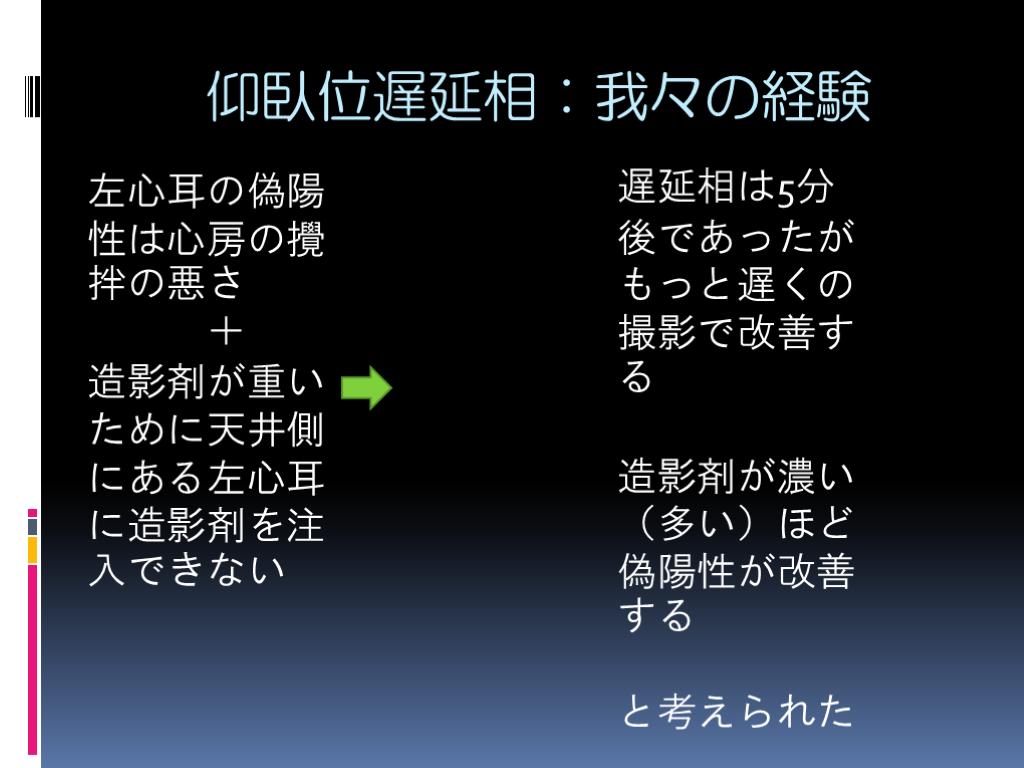 #9. 仰臥位遅延相:我々の経験 左心耳の偽陽性は心房の攪拌の悪さ