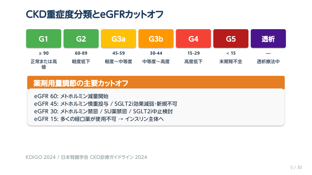 #1. 研修医が必ず迷う!腎機能別 処方の壁 糖尿病薬 CKD完全 マニュアル 全薬剤のeGFR別 使い方・中止基準 30スライド・無料 糖尿病専門医が解説