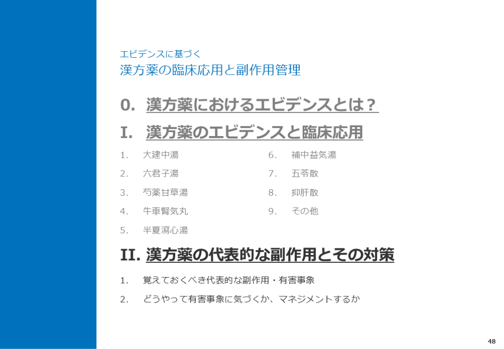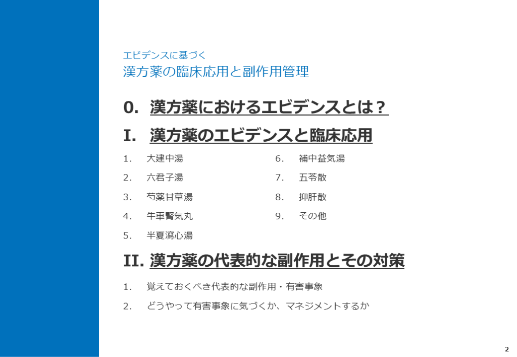どうやって有害事象に気づくか、マネジメントするか 0. 漢方薬におけるエビデンスとは?