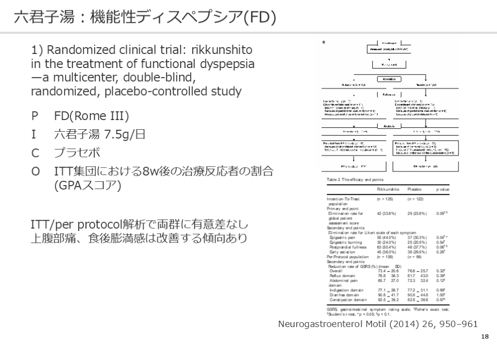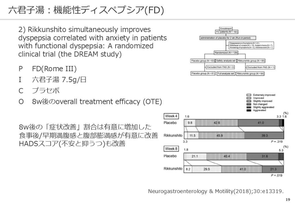 #19. 18 六君子湯:機能性ディスペプシア(FD) 1) Randomized clinical trial: rikkunshito in the treatment of functional dyspepsia—a multicenter, double-blind,