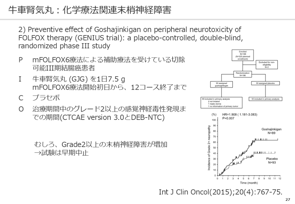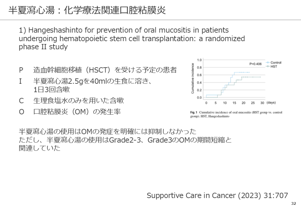 #34. 33 半夏瀉心湯:化学療法関連下痢症(イリノテカン) 1) Efficacy of Hangeshashinto in the Prevention of