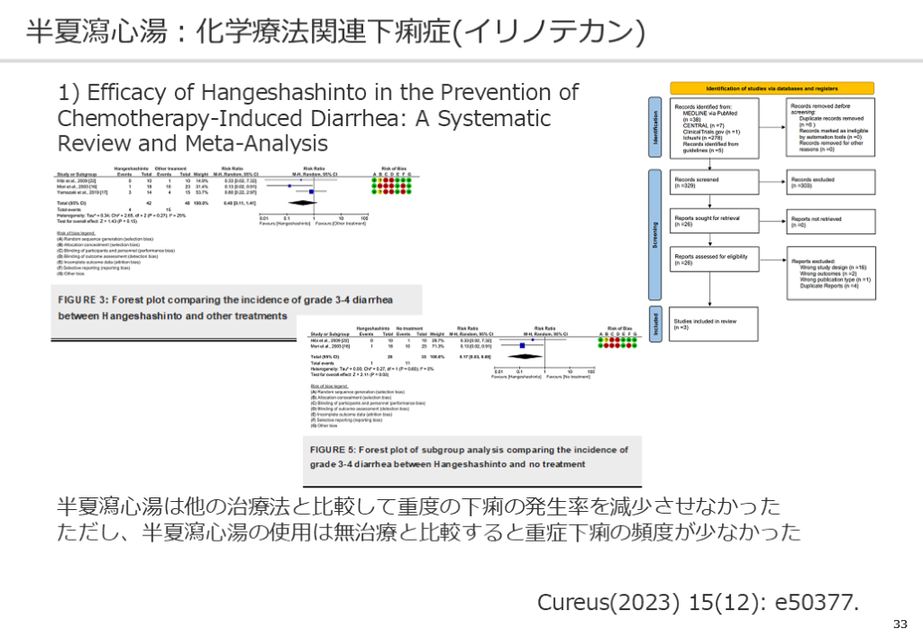 ただし、半夏瀉心湯の使用は無治療と比較すると重症下痢の頻度が少なかった Cureus(2023) 15(12): e50377.