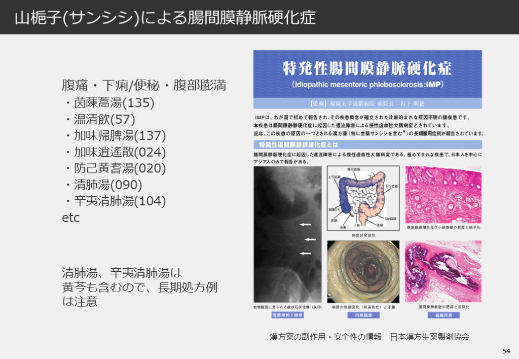 #55. 54 山梔子(サンシシ)による腸間膜静脈硬化症 漢方薬の副作用・安全性の情報 日本漢方生薬製剤協会 腹痛・下痢/便秘・腹部膨満