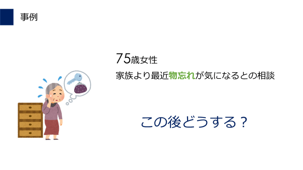 家族より最近物忘れが気になるとの相談 この後どうする?