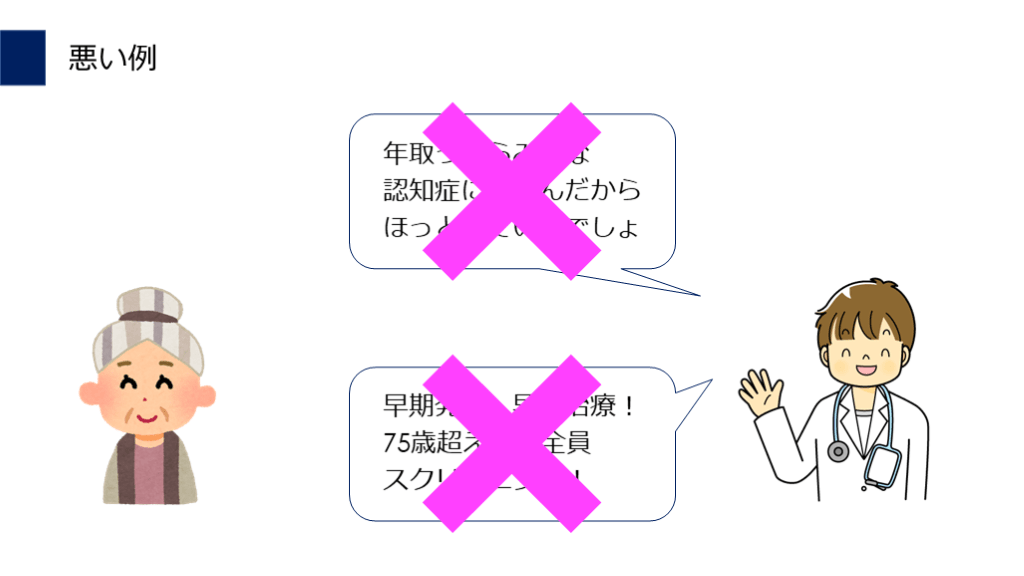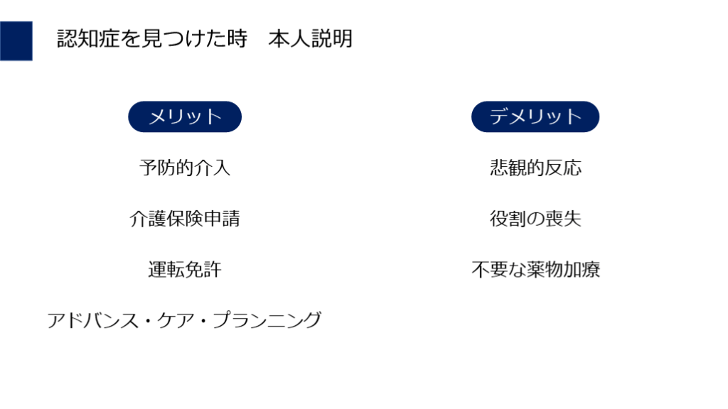 #47. 認知症を見つけた時 本人説明 予防的介入 介護保険申請 アドバンス・ケア・プランニング 運転免許 悲観的反応 役割の喪失 不要な薬物加療