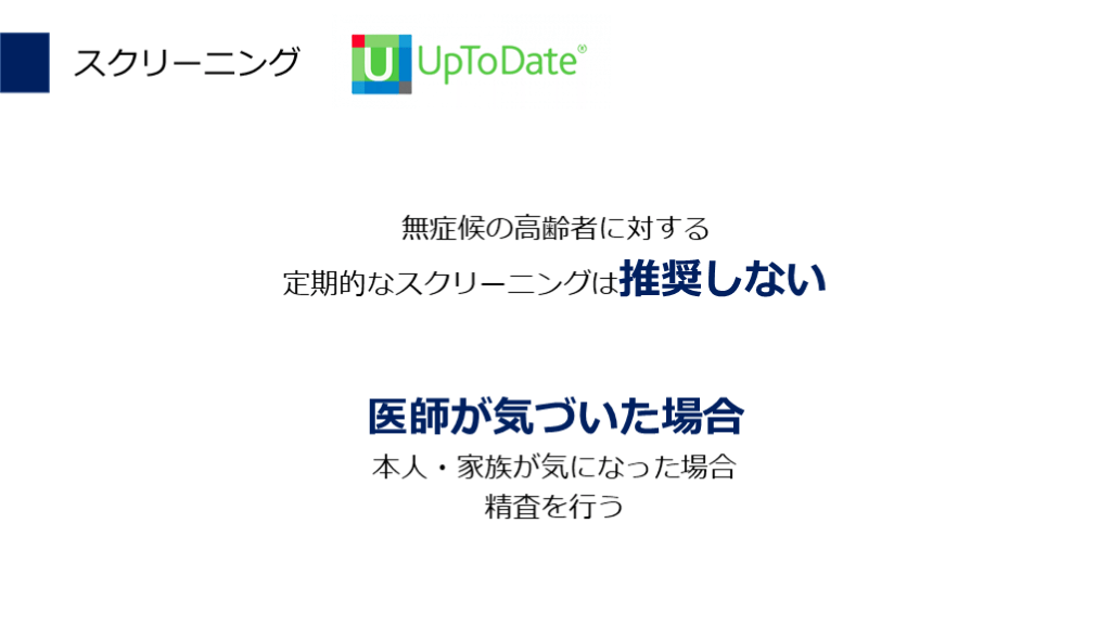 定期的なスクリーニングは推奨しない 医師が気づいた場合