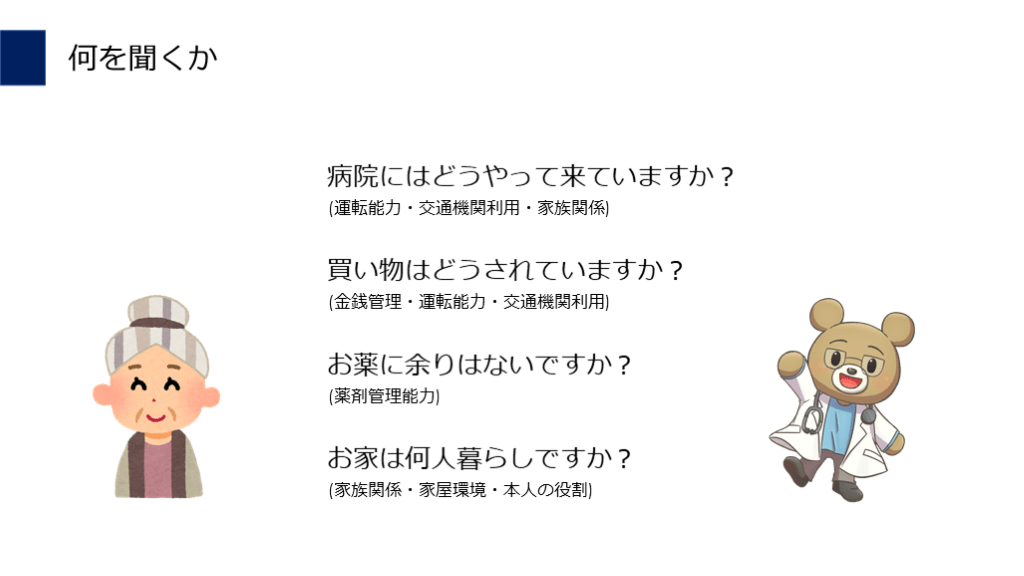 (金銭管理・運転能力・交通機関利用) お薬に余りはないですか?