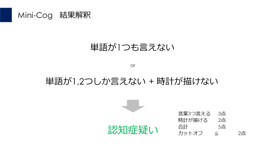 HDS-R ≦ 20点 MMSE ≦ 23点 Mini-Cog HDS-R and/or MMSE カットオフ