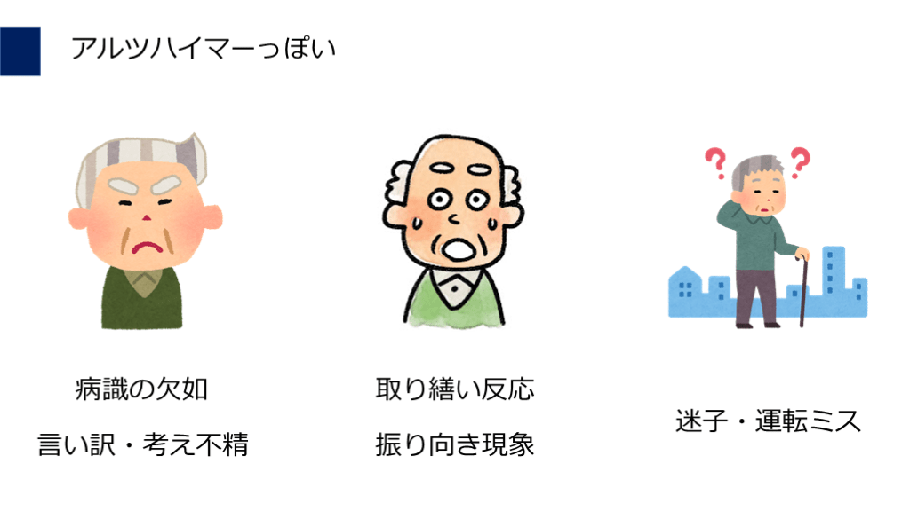 #28. アルツハイマーっぽい 病識の欠如 取り繕い反応 言い訳・考え不精 振り向き現象 迷子・運転ミス