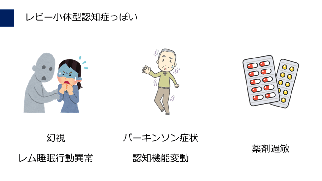 #31. レビー小体型認知症っぽい 幻視 認知機能変動 パーキンソン症状 薬剤過敏 レム睡眠行動異常