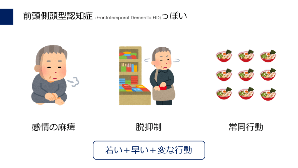 #37. 前頭側頭型認知症 (FrontoTemporal Dementia FTD)っぽい 脱抑制 感情の麻痺 常同行動 若い+早い+変な行動