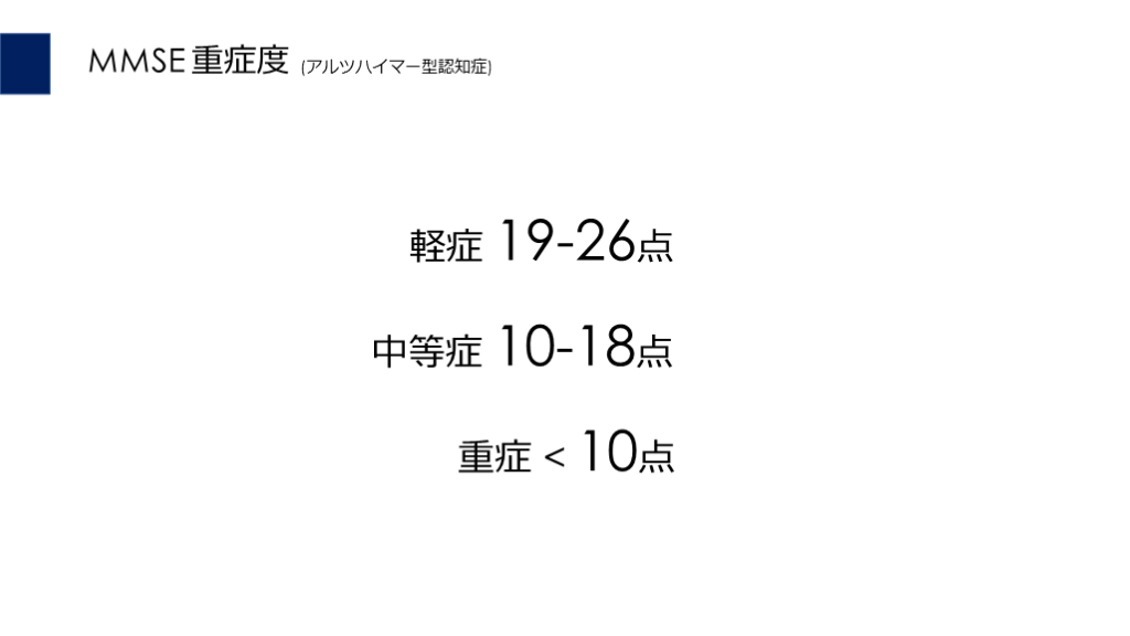 #39. MMSE 重症度 (アルツハイマー型認知症) 軽症 19-26点 中等症 10-18点 重症 < 10点