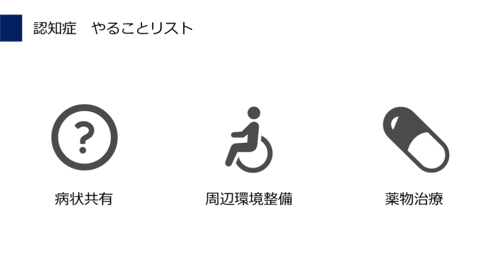 #45. 認知症 やることリスト 病状共有 薬物治療 周辺環境整備
