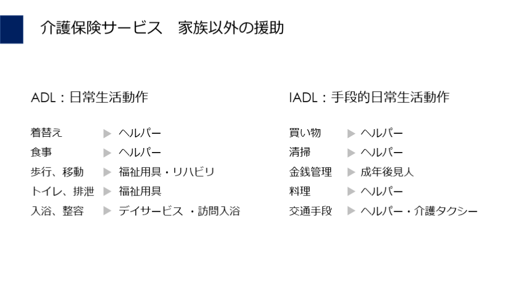 入浴、整容 IADL:手段的日常生活動作 買い物