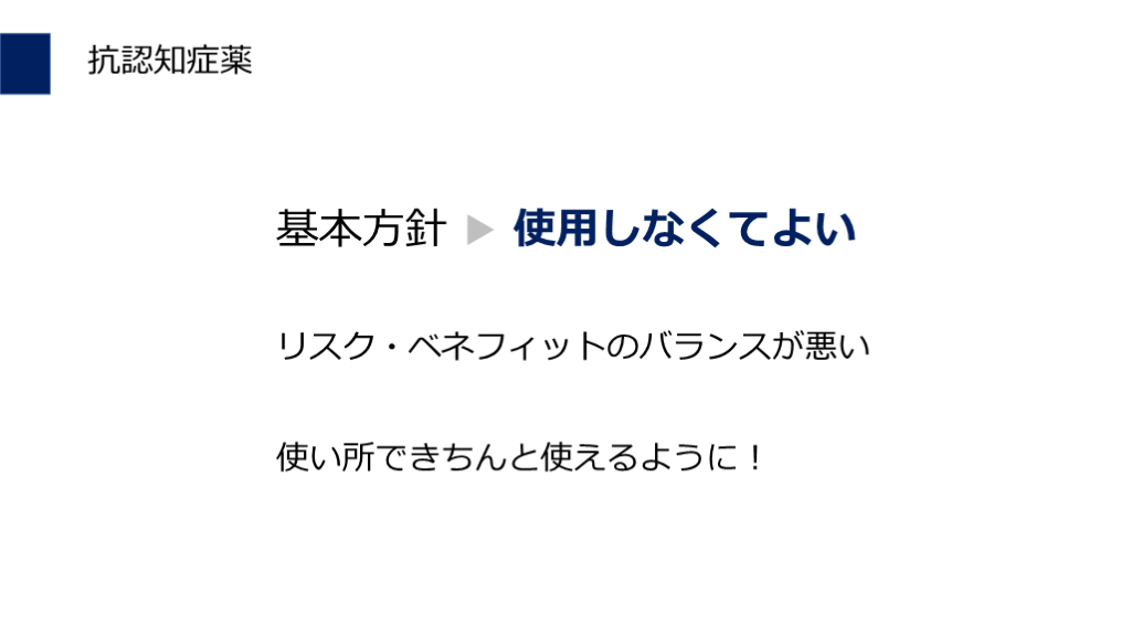 #61. 抗認知症薬 リスク・ベネフィットのバランスが悪い 使い所できちんと使えるように! 基本方針 使用しなくてよい