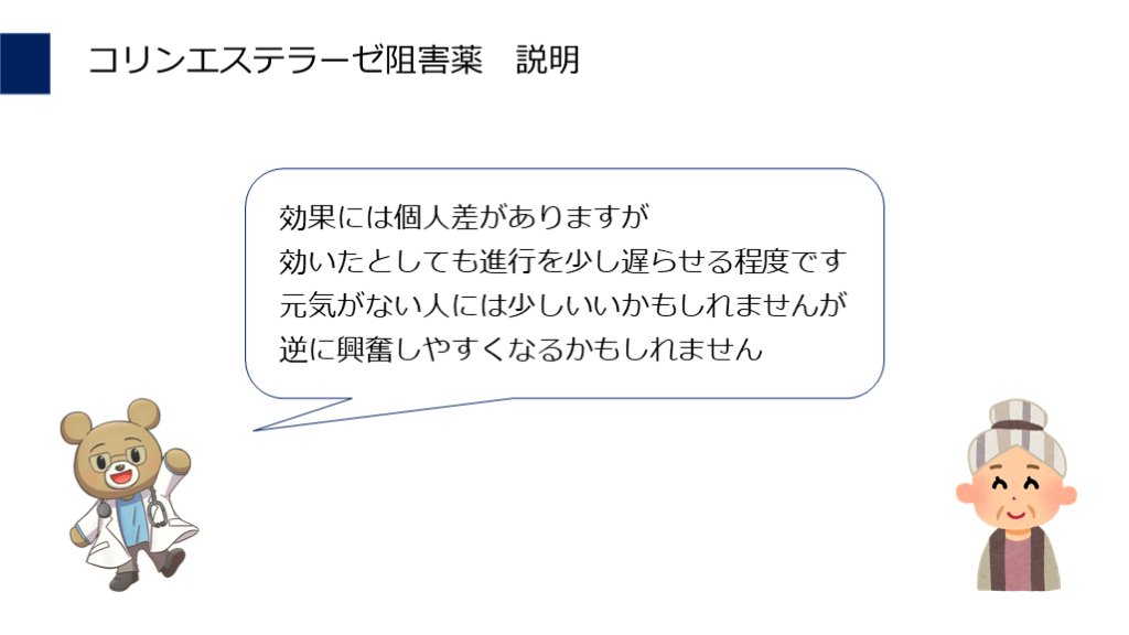 #66. コリンエステラーゼ阻害薬 説明 効果には個人差がありますが