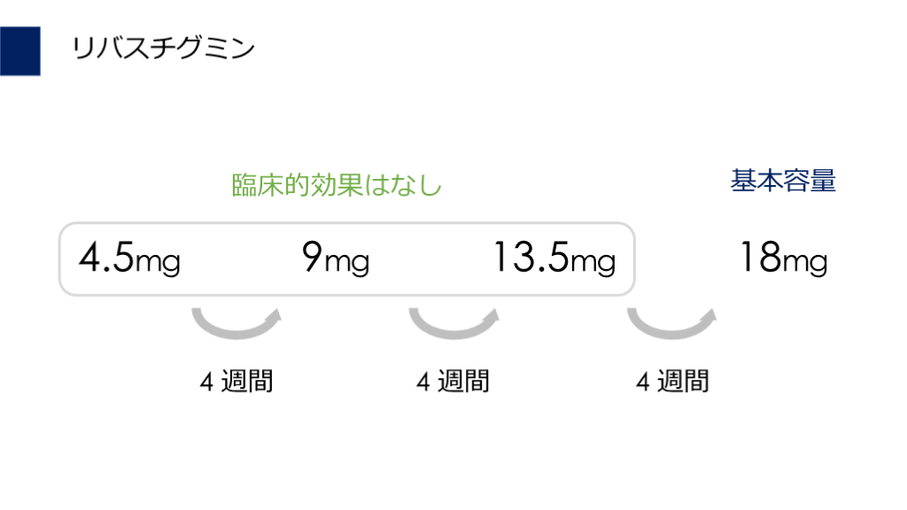 #69. リバスチグミン 4 週間 基本容量 4.5mg 9mg 13.5mg 18mg 4 週間 4 週間 臨床的効果はなし