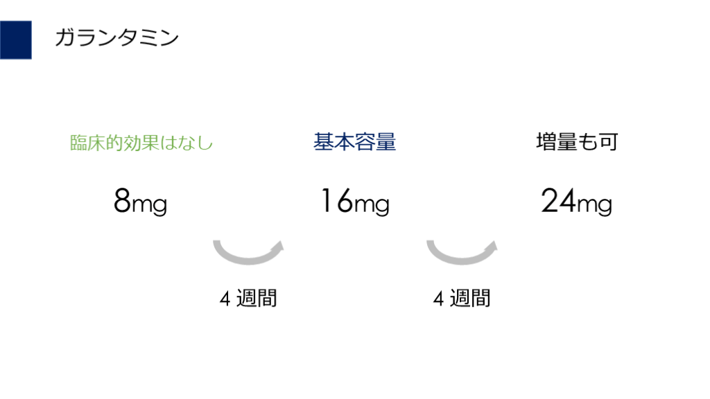 #70. ガランタミン 8mg 16mg 24mg 4 週間 4 週間 臨床的効果はなし 基本容量 増量も可