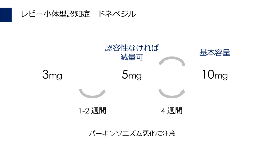 #74. レビー小体型認知症 ドネペジル 3mg 5mg 10mg 1-2 週間 4 週間 基本容量 認容性なければ