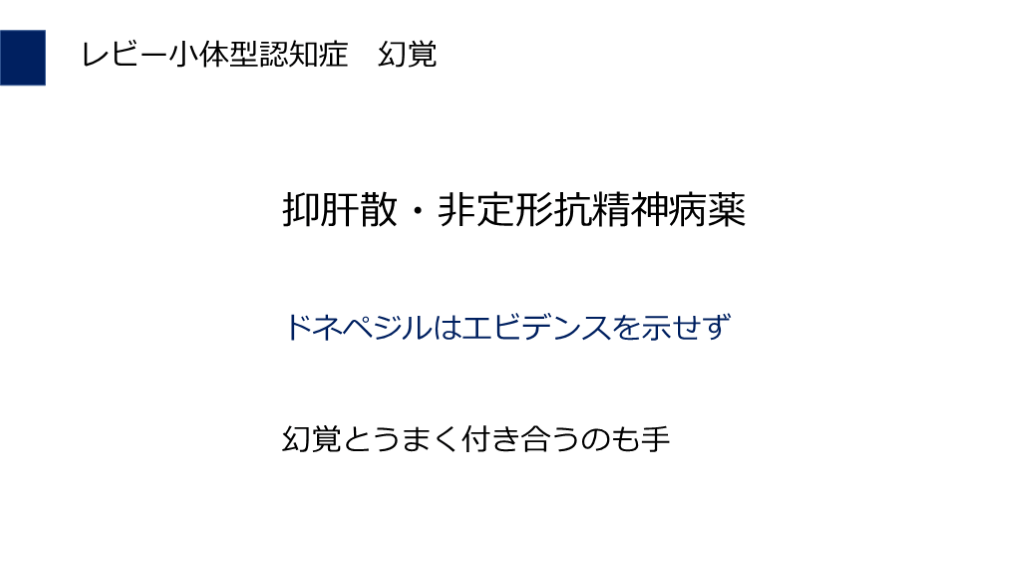 #77. レビー小体型認知症 幻覚 抑肝散・非定形抗精神病薬 ドネペジルはエビデンスを示せず 幻覚とうまく付き合うのも手