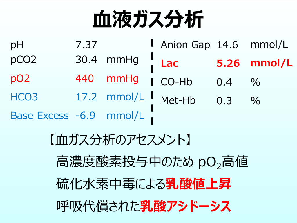 病院到着時の身体所見と血液ガス分析