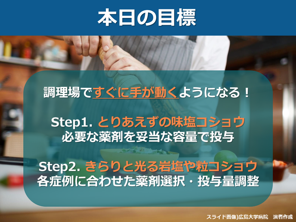 各症例に合わせた薬剤選択・投与量調整 スライド画像)広島大学病院 演者作成