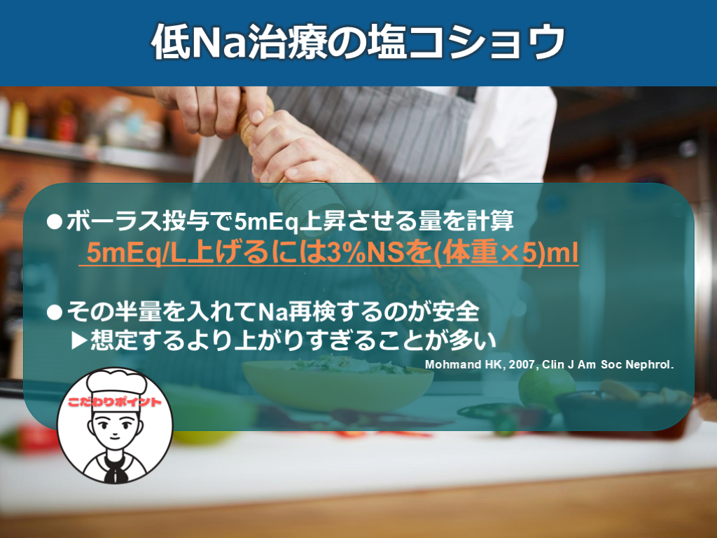 #23. 低Na治療の塩コショウ ●ボーラス投与で5mEq上昇させる量を計算