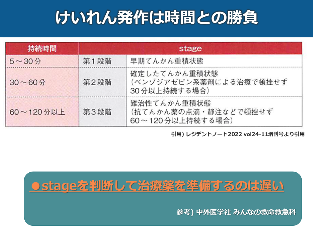 #29. けいれん発作は時間との勝負 引用) レジデントノート2022 vol24-11増刊号より引用 ●stageを判断して治療薬を準備するのは遅い